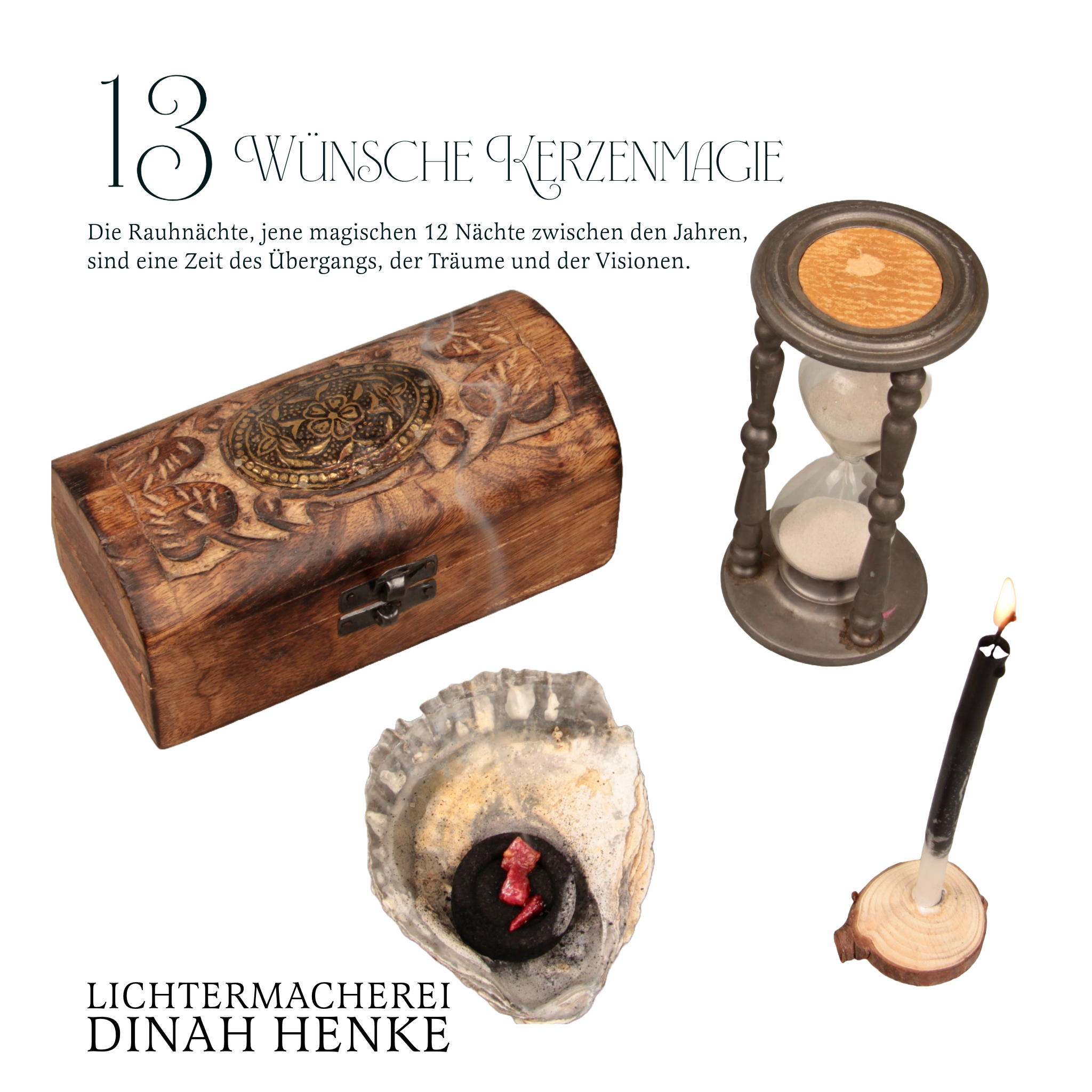 mit dem handgefertigten 13-Wünsche-Ritualset aus der Kerzenwerkstatt Grundfarm Wachskunst.