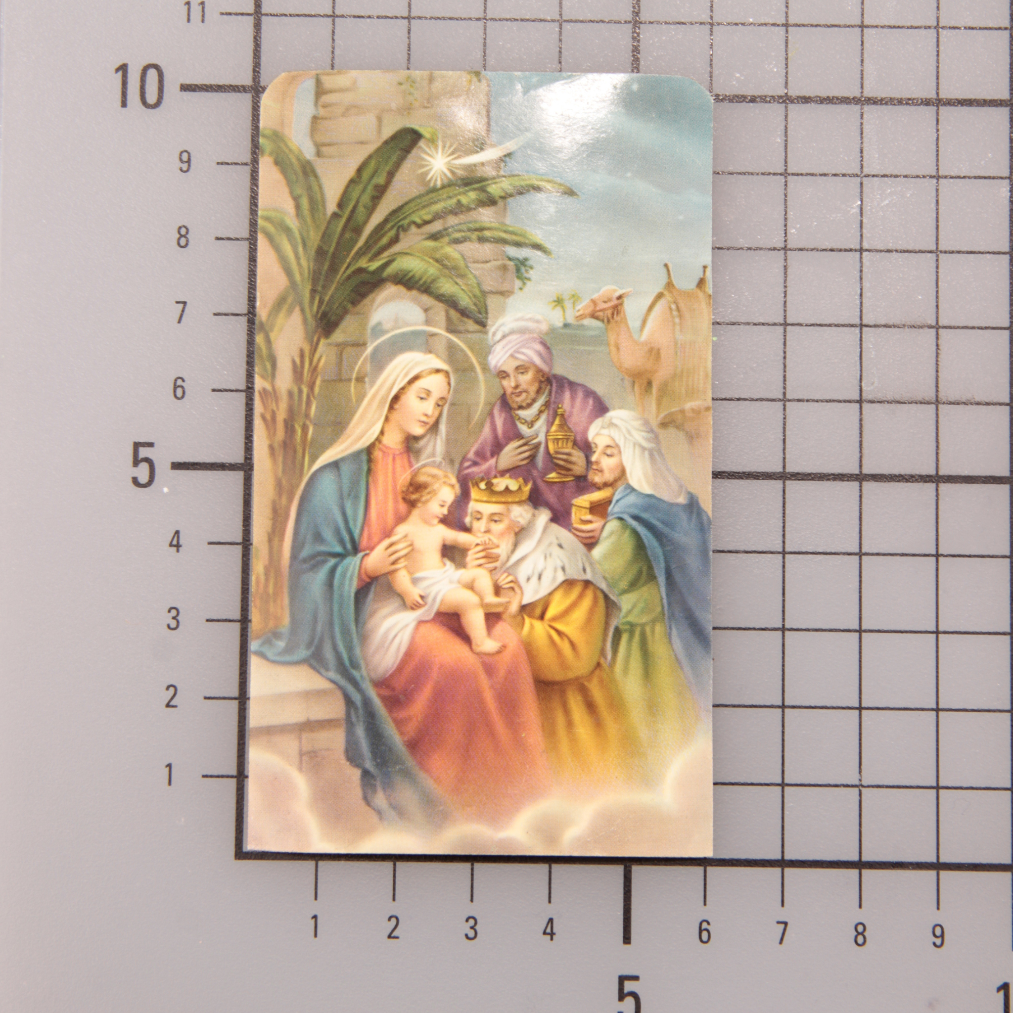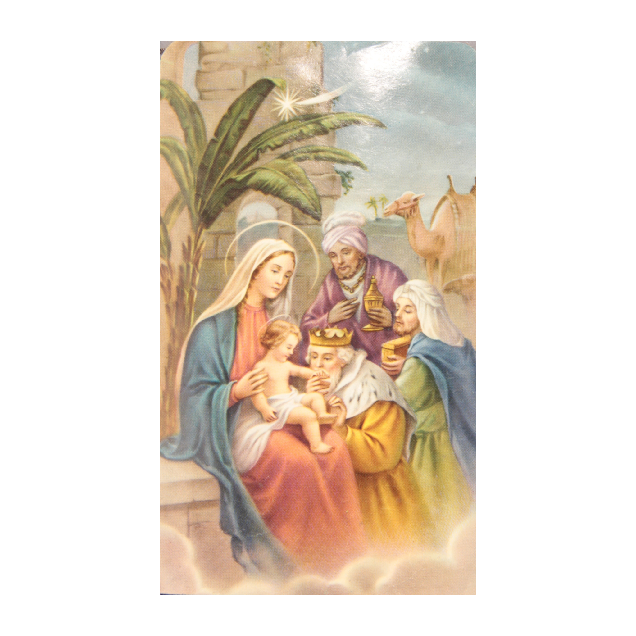 Dieses liebevoll illustrierte Heiligenbild von Maria mit dem Jesuskind und den Heiligen Drei Königen strahlt eine tiefe, friedvolle Energie aus.