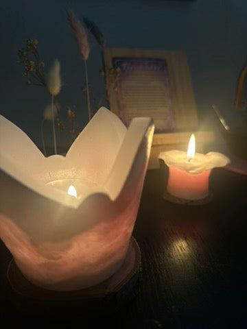 Der Kelch in schützender Engelsform wird aus edlem Premium-Paraffinwachs handgefertigt – geschaffen, um ein Teelicht in seiner Mitte zum Strahlen zu bringen.