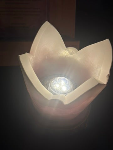 Leuchtet immer wieder neu, da nur das Teelicht in der Mitte ausgetauscht wird