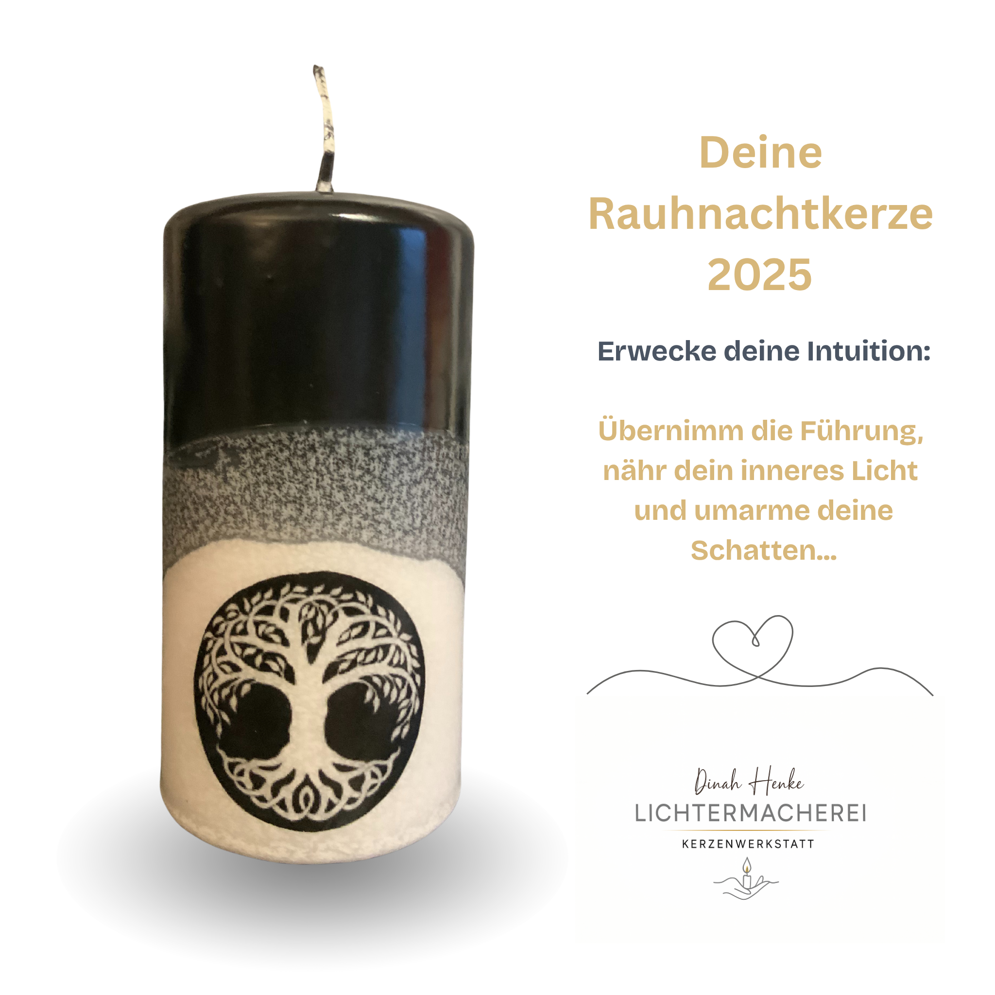 Diese kunstvoll handgefertigte Kerze ist dein Begleiter durch die Rauhnächte – jene magische Zeit zwischen den Jahren, in der Altes losgelassen und Neues begrüßt wird.