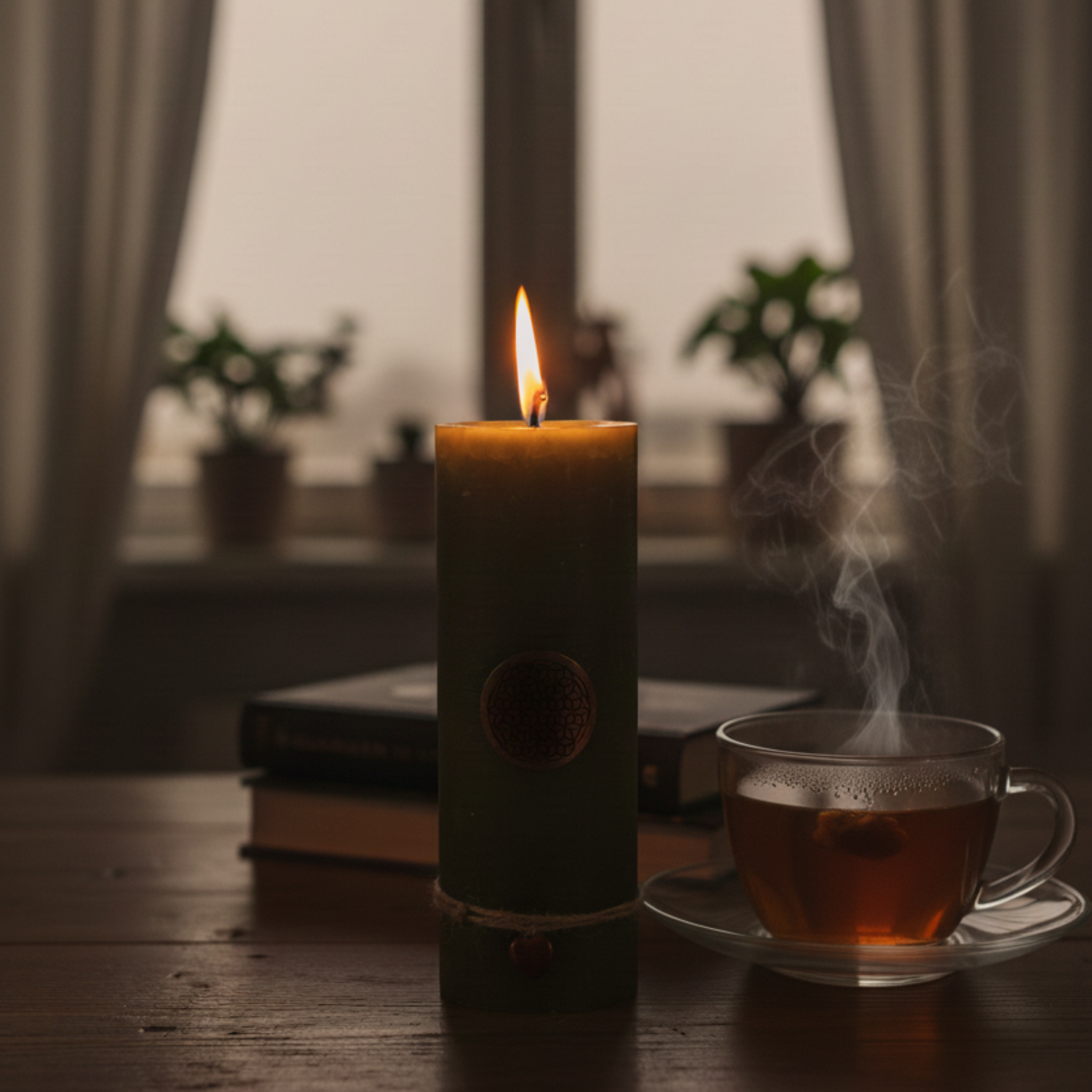 Diese Kerze erinnert dich daran, dein inneres Licht zu ehren und Vertrauen in den Neubeginn zu finden.