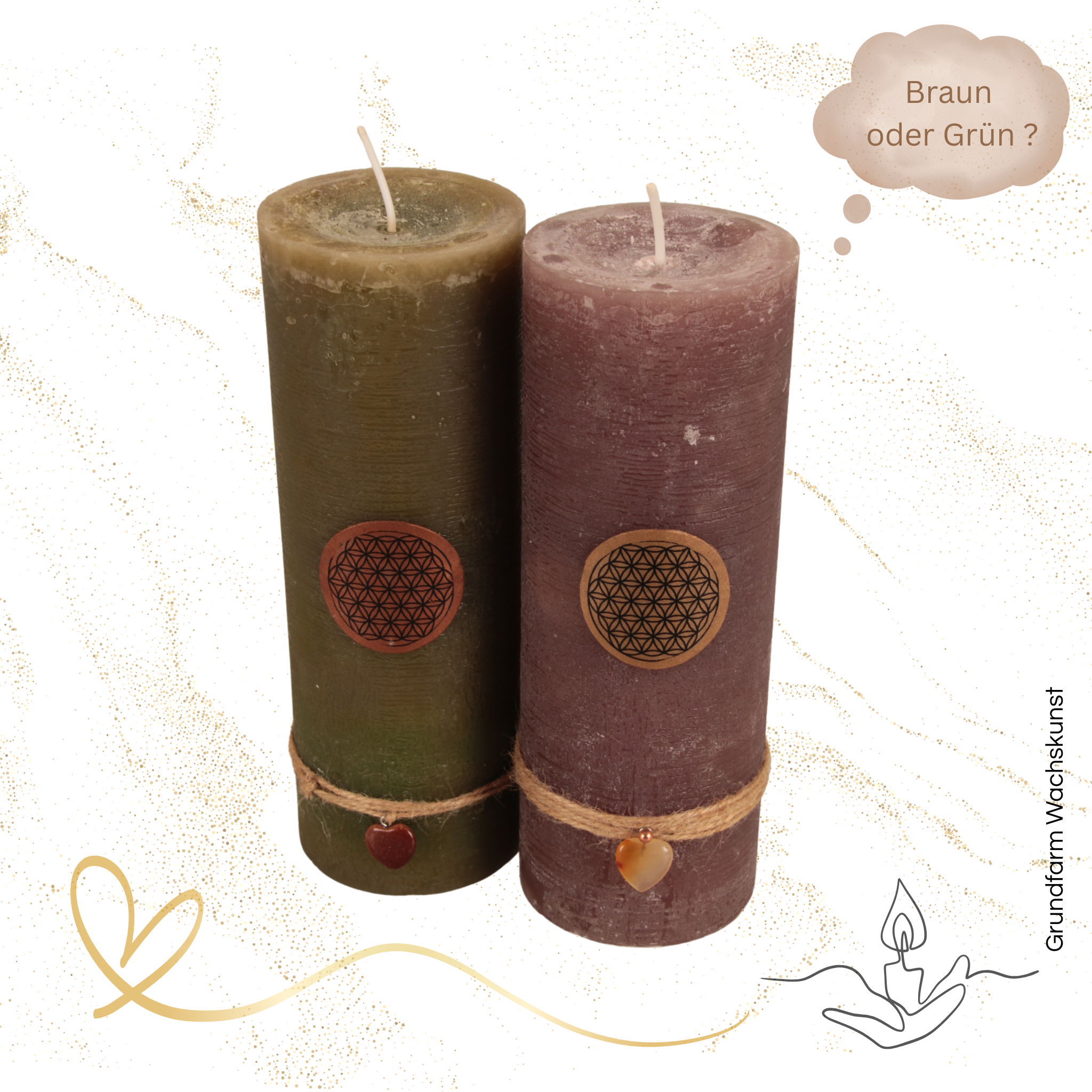 Finde Licht, Klarheit und Schutz in den magischen Rauhnächten mit dieser handgefertigten Rauhnachtkerze in erdigen Braun - und goldenen Tönen.