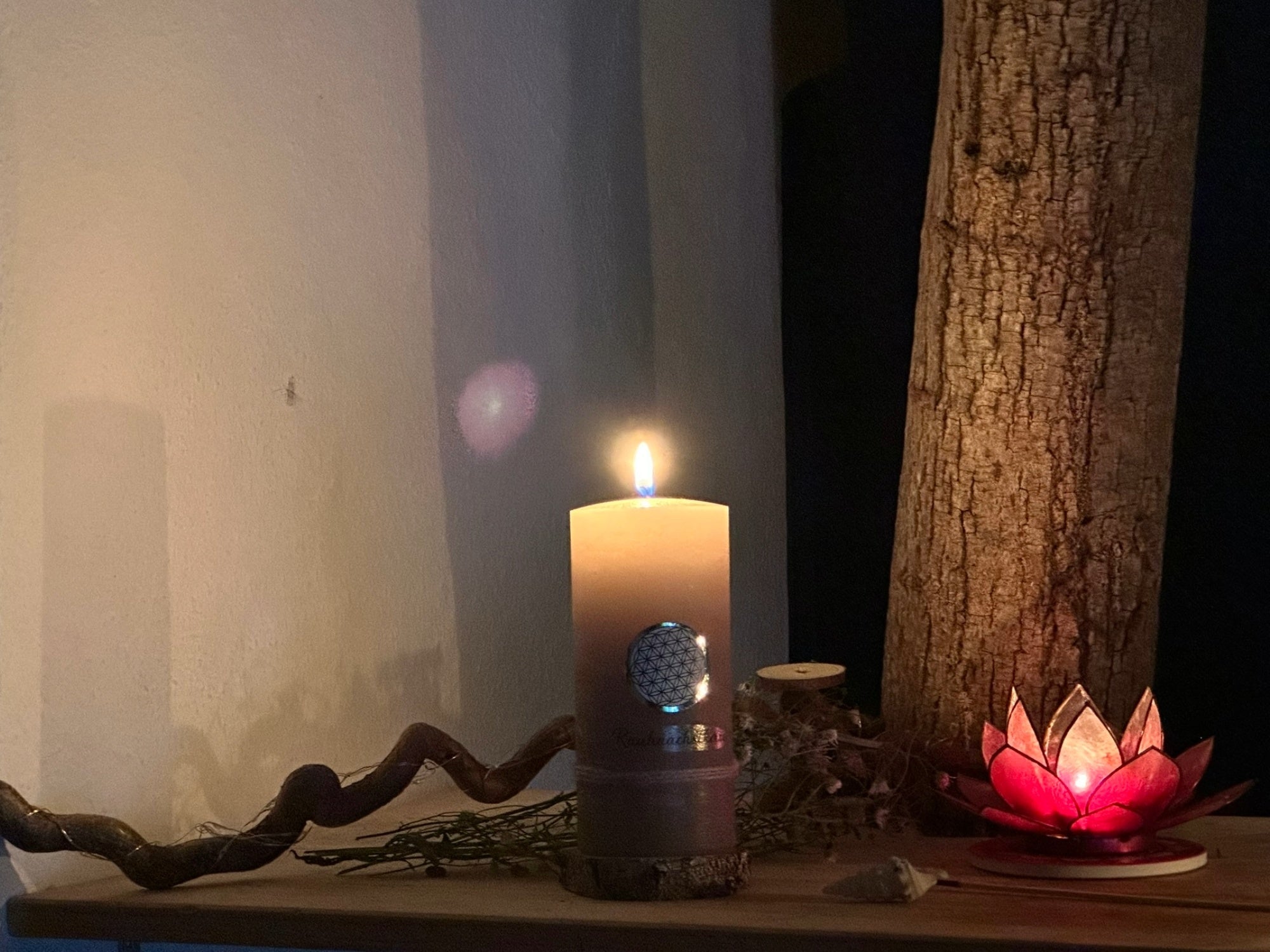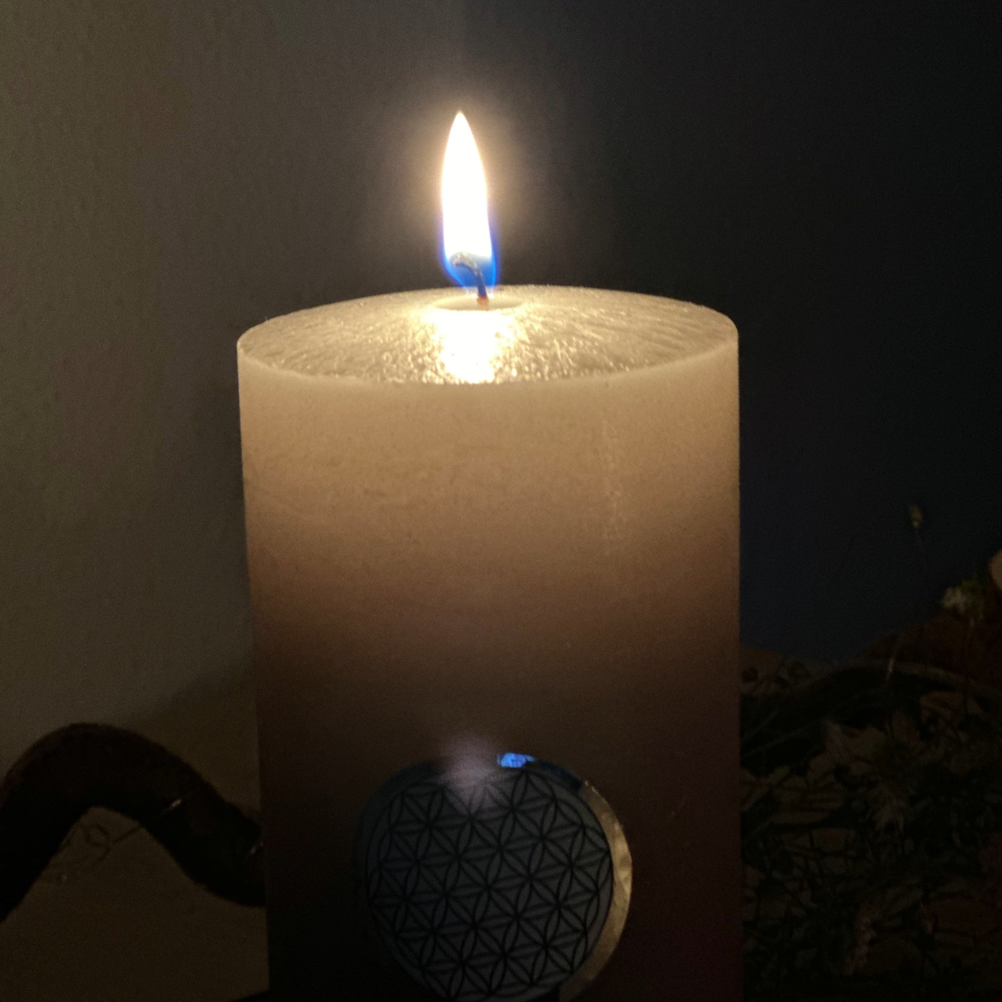 Die Rauhnächte sind eine Zeit der Besinnung und Erneuerung. Die Blume des Lebens auf dieser Kerze symbolisiert universelle Verbundenheit und hilft dir, während dieser Zeit des Loslassens und Neubeginns innere Klarheit zu finden.