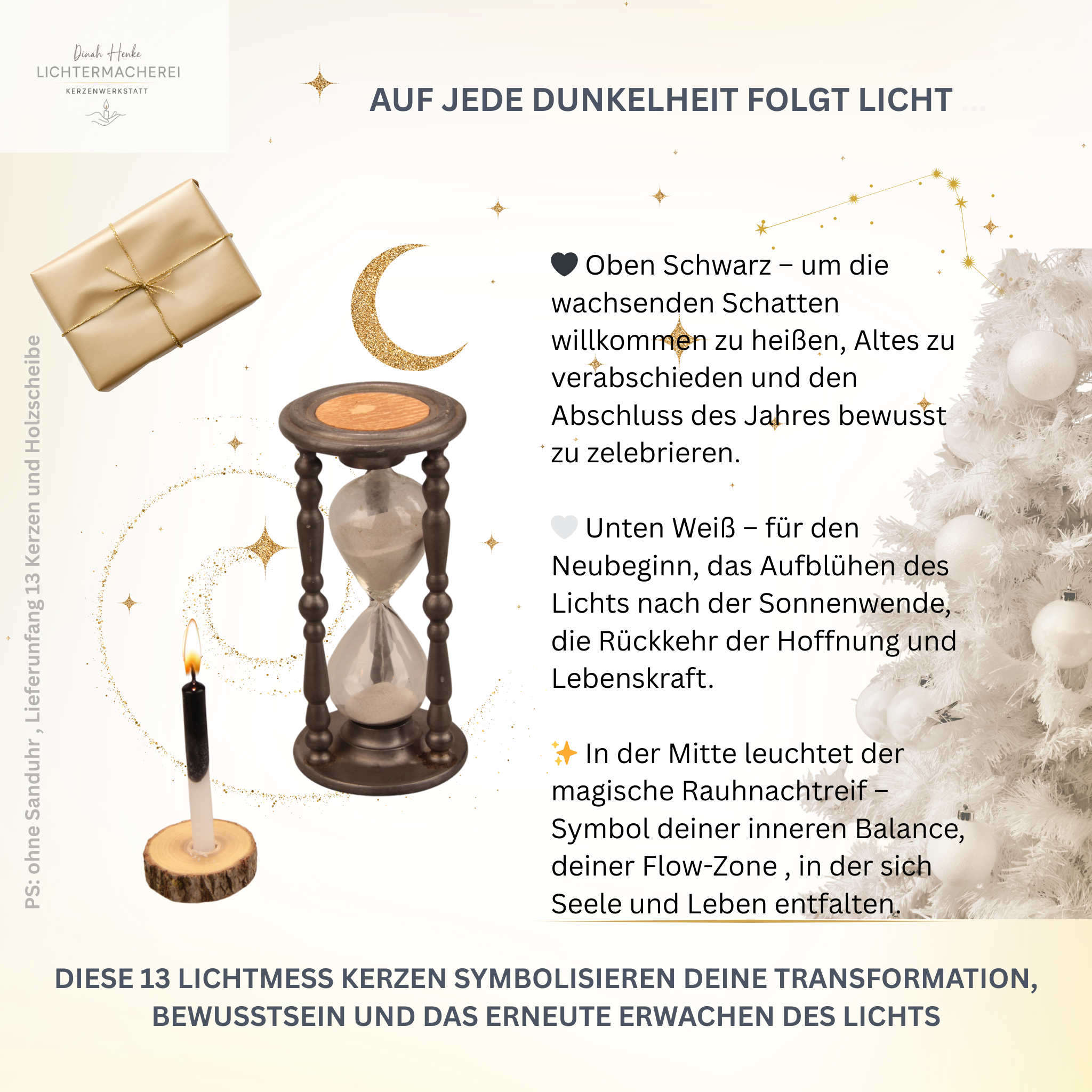 Oben Dunkel, unten Licht – 12+1 handgefertigte Ritualkerzen für Übergänge, Dunkelnächte und innere Schwellzeiten. Wähle dein Licht: Flüster-, Wandel- oder Hüterlicht.