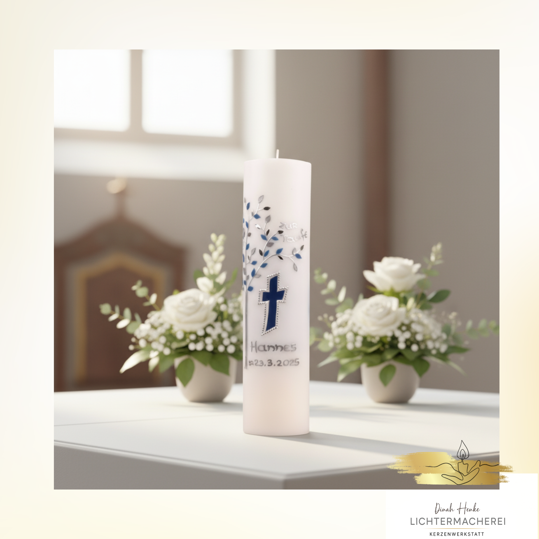 Feiern Sie die Taufe Ihres Kindes mit einer Kerze, die Symbolkraft, Handwerkskunst und Herz vereint – ein echtes Unikat, geschaffen in liebevoller Handarbeit in unserer Manufaktur seit 1971.