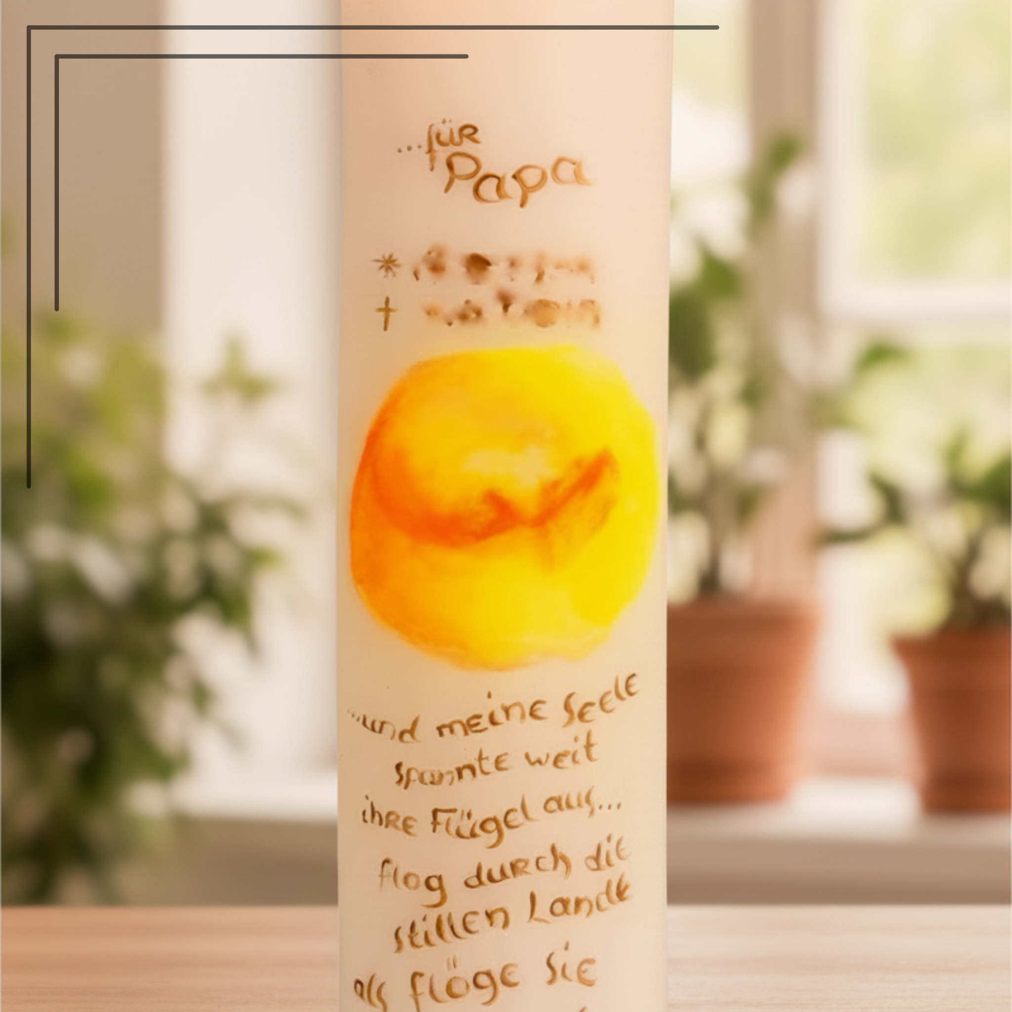 Zeige auf stilvolle und persönliche Weise deine Anteilnahme – mit einer handgefertigten Trauerkerze, die Trost, Erinnerung und Hoffnung vereint.