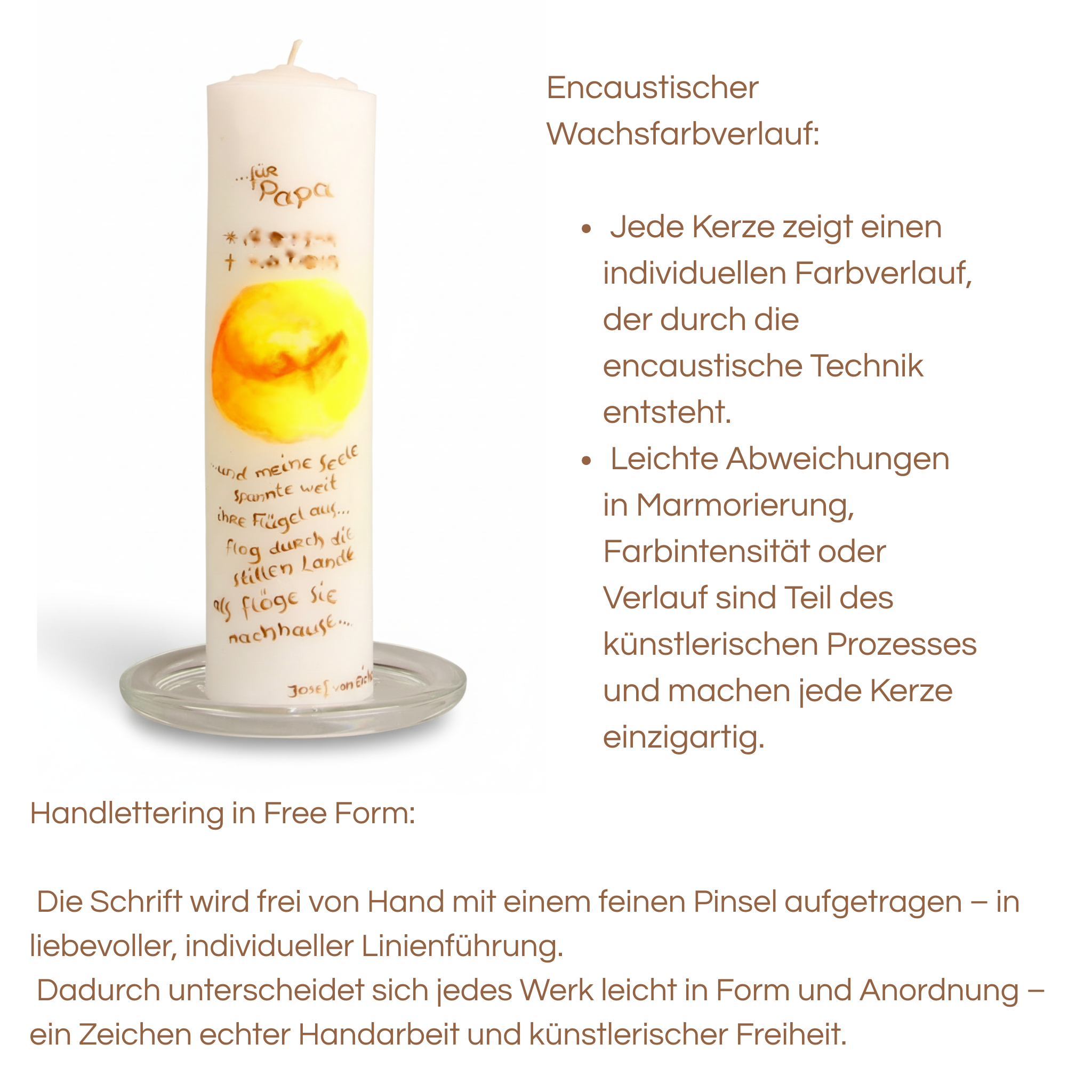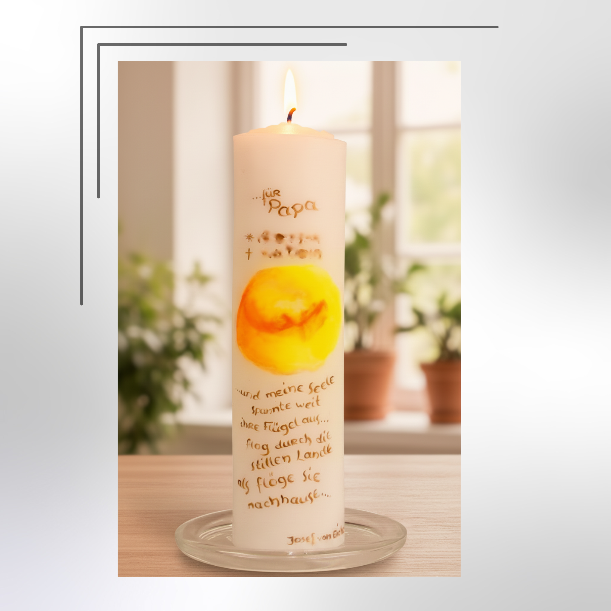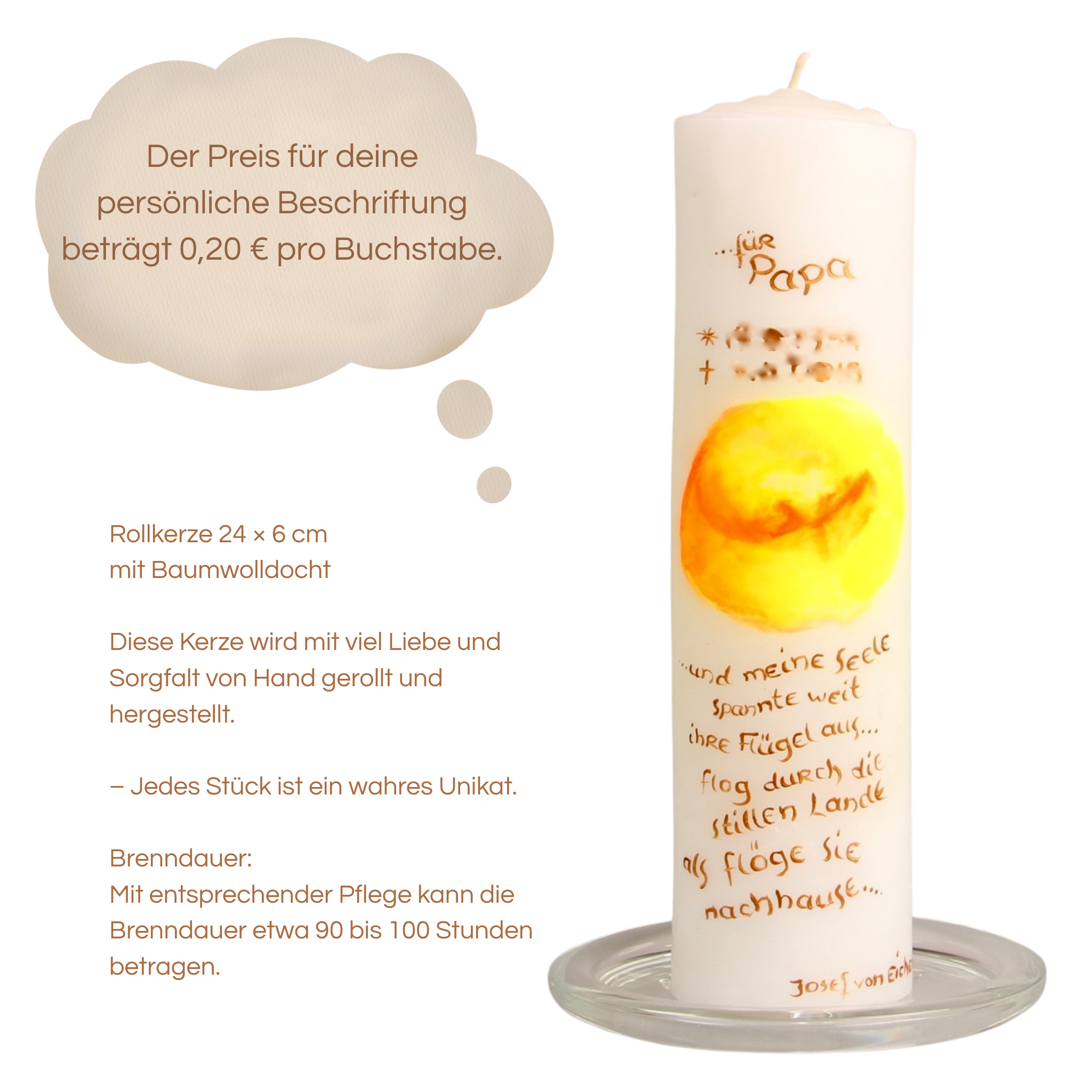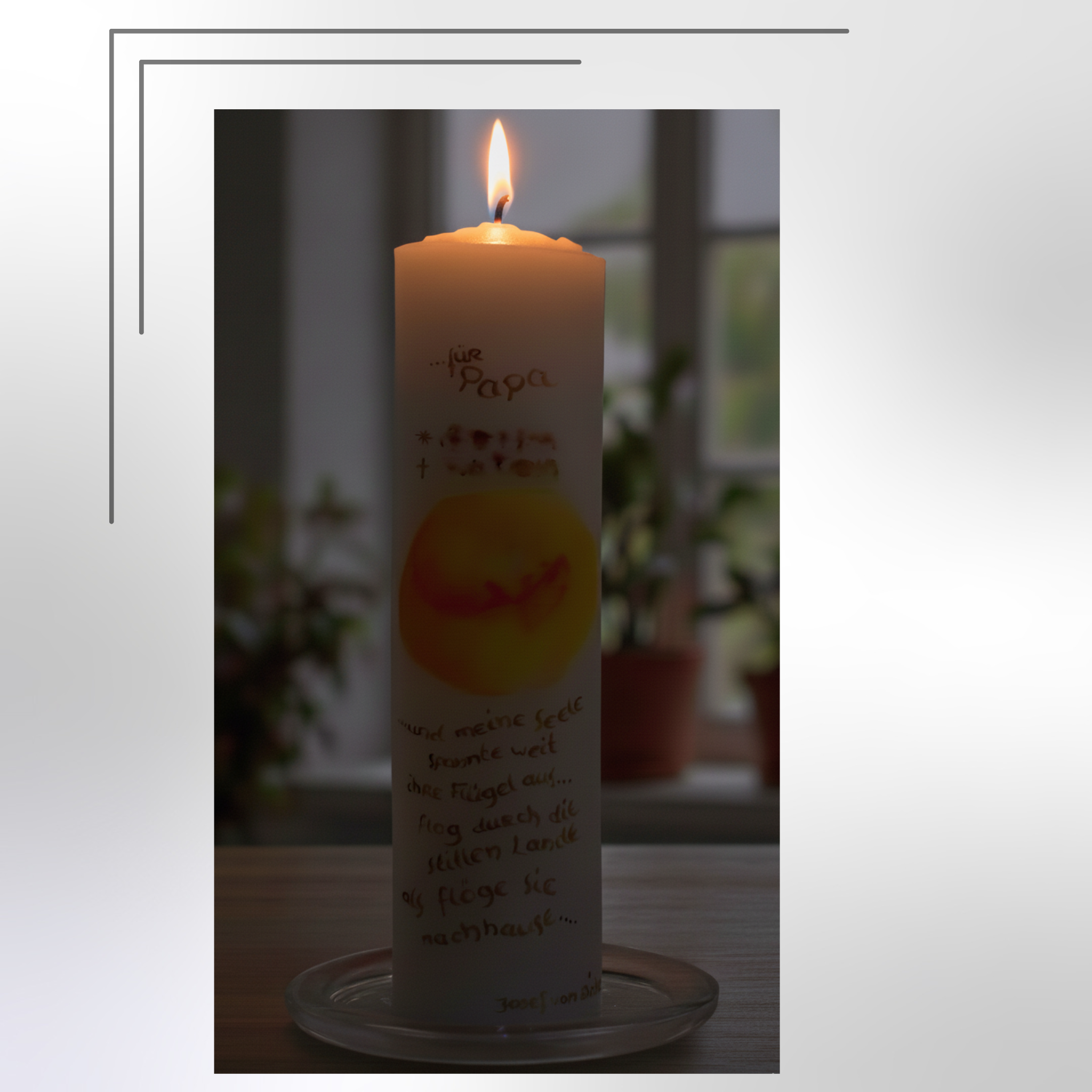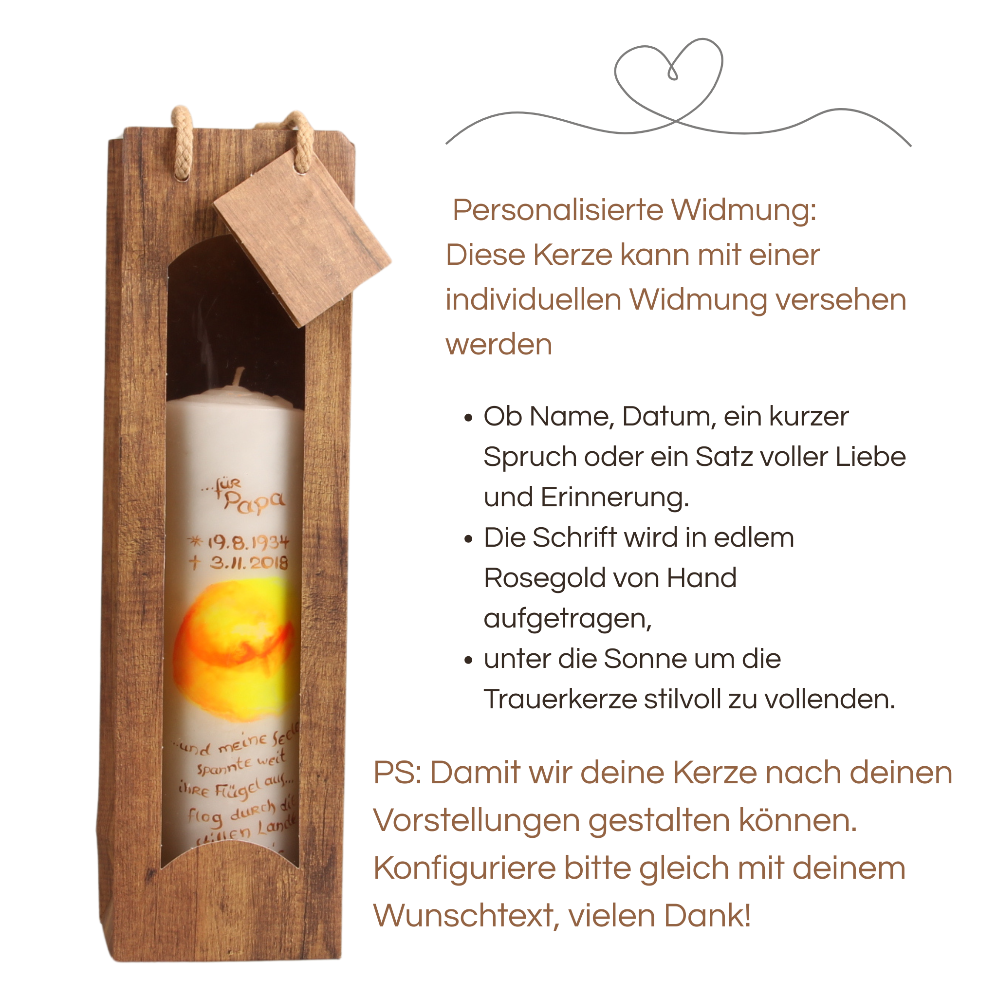 Diese Trauerkerze kann mit einer langen, persönlichen Widmung gestaltet werden – ganz nach deinen Worten und Gefühlen.